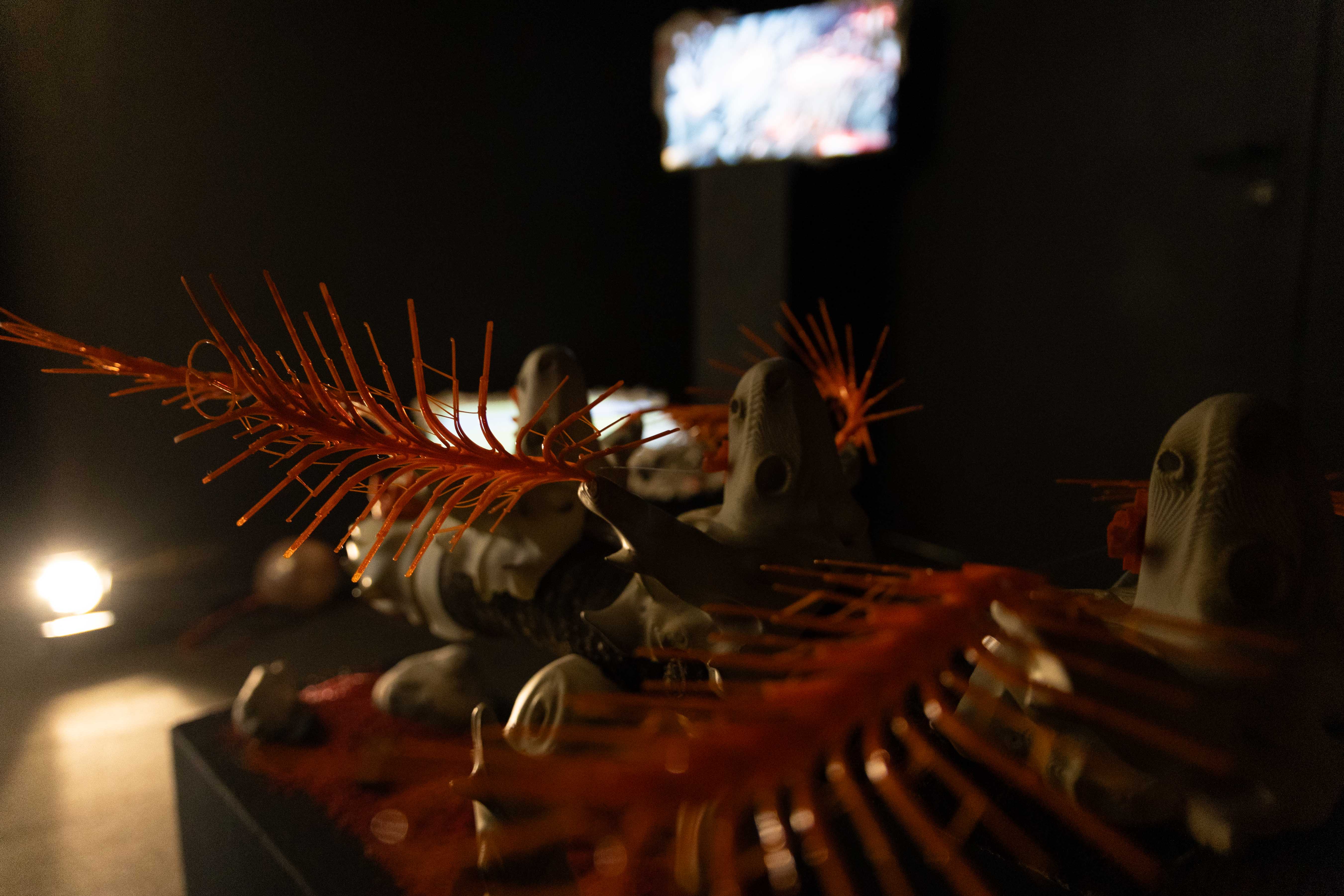 Ourcelium Instalație video (2 videoclipuri - 09:05 min, sunet), lut polimeric, rășină epoxidică, silicon