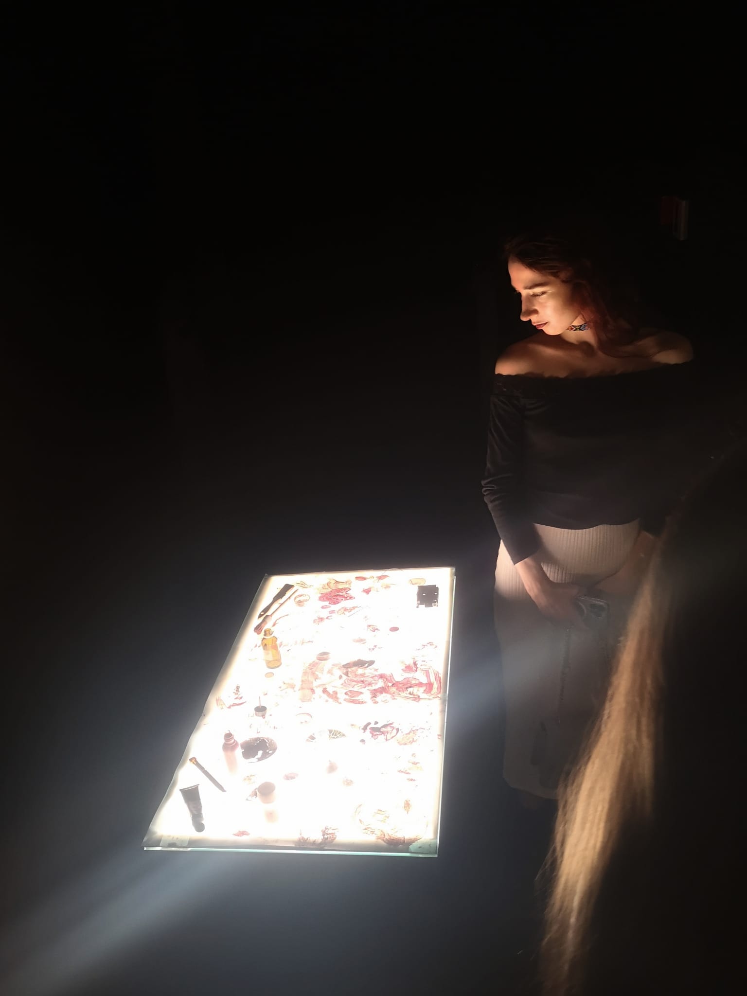 Pentru a contura relația sa cu partea feminină, tatăl a lucrat colajele preponderant cu foarfeca și aracetul, cotrobăind și decupând imagini care l-au inspirat prin revistele din arhiva lui, sau prin cele obținute de la prieteni sau de prin anticariate. Fiica, născută în Generația Alpha, și-a folosit tableta cu aplicatii AI proaspăt disponibile pe internet, reinterpretând și, astfel, completând colajele tatălui cu o viziune nouă, proaspătă, surprinzătoare. În imaginile lor oglindite se întâlnesc teme extrem de diverse, pop-icons, protecția mediului, citate mai mult sau mai puțin celebre, simboluri ale frumuseții feminine eterne din mai multe epoci.